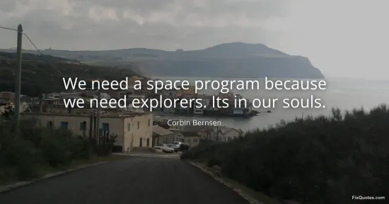A space program is defended here not with budgets or payloads but with an appeal to human nature. The key word is need. Exploration is cast not as a luxury of prosperous nations but as a basic requirement of a thriving species. Souls evokes the deep, pre-rational impulse that pushes people to cross mountains, oceans, and now the vacuum between worlds. It suggests that curiosity and risk-taking are not distractions from practical life; they are part of what makes life meaningful.