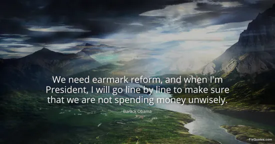 Obama, Barack. (2026, January 18). We need earmark reform, and when I'm President, I will go line by line to make sure that we are not spending money unwisely. FixQuotes. https://fixquotes.com/quotes/we-need-earmark-reform-and-when-im-president-i-18390/