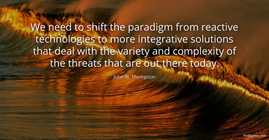 Thompson, John W. (2026, January 17). We need to shift the paradigm from reactive technologies to more integrative solutions that deal with the variety and complexity of the threats that are out there today. FixQuotes. https://fixquotes.com/quotes/we-need-to-shift-the-paradigm-from-reactive-68252/
