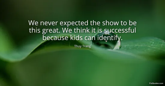 Trang, Thuy. "We never expected the show to be this great. We think it is successful because kids can identify." FixQuotes. January 16, 2026. https://fixquotes.com/quotes/we-never-expected-the-show-to-be-this-great-we-127034/.