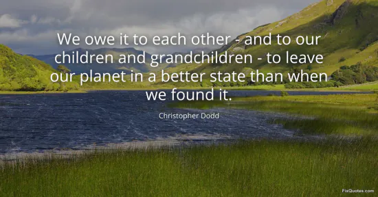 Dodd, Christopher. (2026, January 16). We owe it to each other - and to our children and grandchildren - to leave our planet in a better state than when we found it. FixQuotes. https://fixquotes.com/quotes/we-owe-it-to-each-other-and-to-our-children-and-87454/