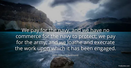 Redmond, John Edward. "We pay for the navy, and we have no commerce for the navy to protect; we pay for the army, and we loathe and execrate the work upon which it has been engaged." FixQuotes. January 15, 2026. https://fixquotes.com/quotes/we-pay-for-the-navy-and-we-have-no-commerce-for-167794/.