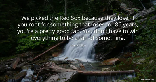 Fallon, Jimmy. (2026, January 16). We picked the Red Sox because they lose. If you root for something that loses for 86 years, you're a pretty good fan. You don't have to win everything to be a fan of something. FixQuotes. https://fixquotes.com/quotes/we-picked-the-red-sox-because-they-lose-if-you-106804/