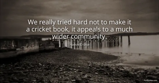 "We really tried hard not to make it a cricket book, it appeals to a much wider community." FixQuotes, 16 Jan. 2026, https://fixquotes.com/quotes/we-really-tried-hard-not-to-make-it-a-cricket-124298/. Accessed 12 Feb. 2026.
