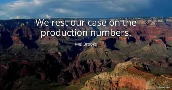 Brooks, Mel. "We rest our case on the production numbers." FixQuotes. January 18, 2026. https://fixquotes.com/quotes/we-rest-our-case-on-the-production-numbers-821/.