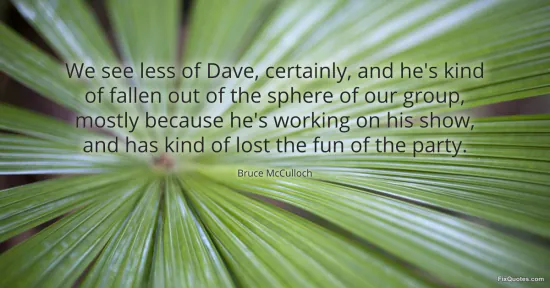 McCulloch, Bruce. "We see less of Dave, certainly, and he's kind of fallen out of the sphere of our group, mostly because he's working on his show, and has kind of lost the fun of the party." FixQuotes. January 17, 2026. https://fixquotes.com/quotes/we-see-less-of-dave-certainly-and-hes-kind-of-38781/.