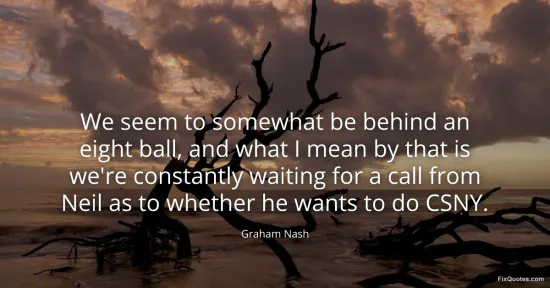 Nash, Graham. "We seem to somewhat be behind an eight ball, and what I mean by that is we're constantly waiting for a call from Neil as to whether he wants to do CSNY." FixQuotes. January 17, 2026. https://fixquotes.com/quotes/we-seem-to-somewhat-be-behind-an-eight-ball-and-74528/.