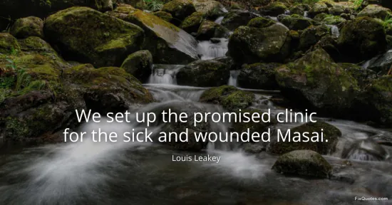 Leakey, Louis. (2026, January 16). We set up the promised clinic for the sick and wounded Masai. FixQuotes. https://fixquotes.com/quotes/we-set-up-the-promised-clinic-for-the-sick-and-104665/