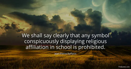 Raffarin, Jean-Pierre. (2026, January 16). We shall say clearly that any symbol conspicuously displaying religious affiliation in school is prohibited. FixQuotes. https://fixquotes.com/quotes/we-shall-say-clearly-that-any-symbol-106266/