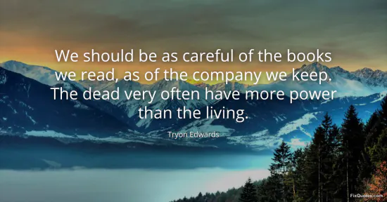 Edwards, Tryon. (2026, January 18). We should be as careful of the books we read, as of the company we keep. The dead very often have more power than the living. FixQuotes. https://fixquotes.com/quotes/we-should-be-as-careful-of-the-books-we-read-as-23034/