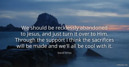 Orrico, Stacie. (2026, January 17). We should be recklessly abandoned to Jesus, and just turn it over to Him. Through the support I think the sacrifices will be made and we'll all be cool with it. FixQuotes. https://fixquotes.com/quotes/we-should-be-recklessly-abandoned-to-jesus-and-75795/