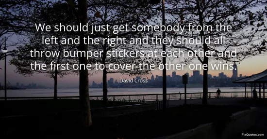 Cross, David. (2026, January 17). We should just get somebody from the left and the right and they should all throw bumper stickers at each other and the first one to cover the other one wins. FixQuotes. https://fixquotes.com/quotes/we-should-just-get-somebody-from-the-left-and-the-49451/