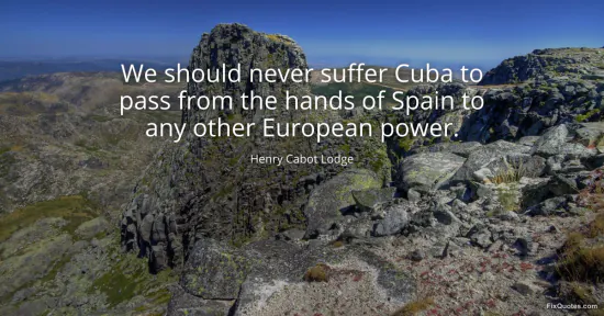 Lodge, Henry Cabot. "We should never suffer Cuba to pass from the hands of Spain to any other European power." FixQuotes. January 17, 2026. https://fixquotes.com/quotes/we-should-never-suffer-cuba-to-pass-from-the-55605/.