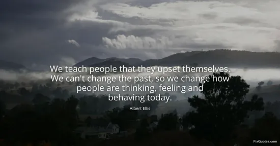 Ellis, Albert. "We teach people that they upset themselves. We can't change the past, so we change how people are thinking, feeling and behaving today." FixQuotes. January 17, 2026. https://fixquotes.com/quotes/we-teach-people-that-they-upset-themselves-we-32953/.