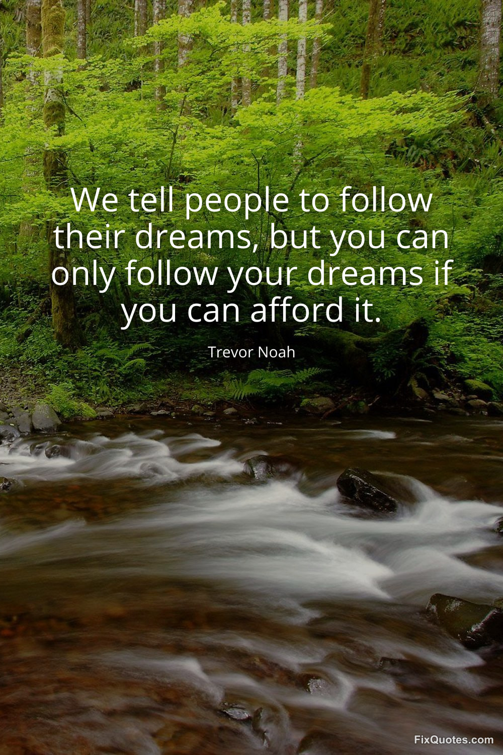 Noah, Trevor. (2026, February 3). We tell people to follow their dreams, but you can only follow your dreams if you can afford it. FixQuotes. https://fixquotes.com/quotes/we-tell-people-to-follow-their-dreams-but-you-can-184880/