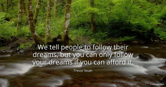Noah, Trevor. "We tell people to follow their dreams, but you can only follow your dreams if you can afford it." FixQuotes. February 3, 2026. https://fixquotes.com/quotes/we-tell-people-to-follow-their-dreams-but-you-can-184880/.