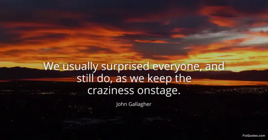 Gallagher, John. (2026, January 16). We usually surprised everyone, and still do, as we keep the craziness onstage. FixQuotes. https://fixquotes.com/quotes/we-usually-surprised-everyone-and-still-do-as-we-112314/