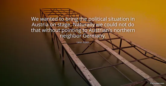 Askin, Leon. "We wanted to bring the political situation in Austria on stage. Naturally we could not do that without pointing to Austrian's northern neighbor Germany." FixQuotes. January 18, 2026. https://fixquotes.com/quotes/we-wanted-to-bring-the-political-situation-in-4314/.