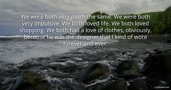 John, Elton. "We were both very much the same. We were both very impulsive. We both loved life. We both loved shopping. We both had a love of clothes, obviously, because he was the designer that I kind of wore forever and ever." FixQuotes. January 17, 2026. https://fixquotes.com/quotes/we-were-both-very-much-the-same-we-were-both-very-28540/.