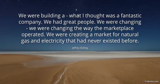 Skilling, Jeffrey. "We were building a - what I thought was a fantastic company. We had great people. We were changing - we were changing the way the marketplace operated. We were creating a market for natural gas and electricity that had never existed before." FixQuotes. January 15, 2026. https://fixquotes.com/quotes/we-were-building-a-what-i-thought-was-a-168951/.