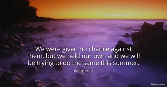 Keane, Robbie. (2026, January 16). We were given no chance against them, but we held our own and we will be trying to do the same this summer. FixQuotes. https://fixquotes.com/quotes/we-were-given-no-chance-against-them-but-we-held-102449/