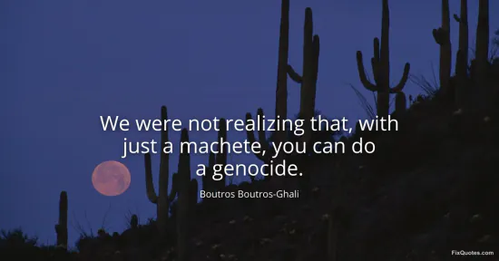 Boutros-Ghali, Boutros. "We were not realizing that, with just a machete, you can do a genocide." FixQuotes. January 17, 2026. https://fixquotes.com/quotes/we-were-not-realizing-that-with-just-a-machete-75110/.