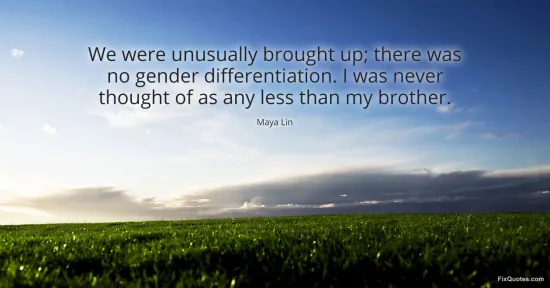 Lin, Maya. "We were unusually brought up; there was no gender differentiation. I was never thought of as any less than my brother." FixQuotes. January 18, 2026. https://fixquotes.com/quotes/we-were-unusually-brought-up-there-was-no-gender-12657/.