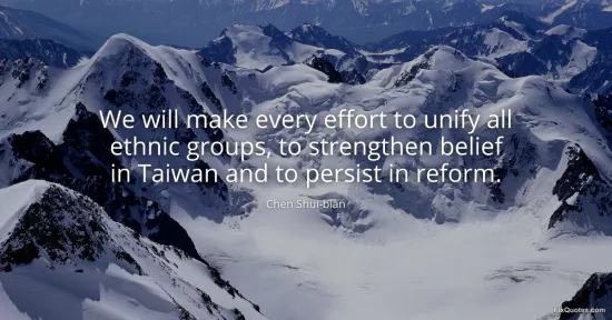 "We will make every effort to unify all ethnic groups, to strengthen belief in Taiwan and to persist in reform"