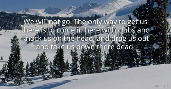 Star, Morning. (2026, January 18). We will not go. The only way to get us there is to come in here with clubs and knock us on the head, and drag us out and take us down there dead. FixQuotes. https://fixquotes.com/quotes/we-will-not-go-the-only-way-to-get-us-there-is-to-15531/