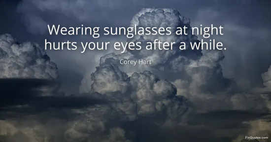 Hart, Corey. (2026, January 17). Wearing sunglasses at night hurts your eyes after a while. FixQuotes. https://fixquotes.com/quotes/wearing-sunglasses-at-night-hurts-your-eyes-after-46839/