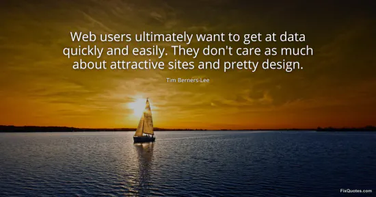 Berners-Lee, Tim. (2026, January 18). Web users ultimately want to get at data quickly and easily. They don't care as much about attractive sites and pretty design. FixQuotes. https://fixquotes.com/quotes/web-users-ultimately-want-to-get-at-data-quickly-11506/