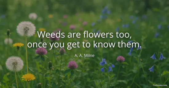 Milne, A. A. (2026, January 13). Weeds are flowers too, once you get to know them. FixQuotes. https://fixquotes.com/quotes/weeds-are-flowers-too-once-you-get-to-know-them-23670/
