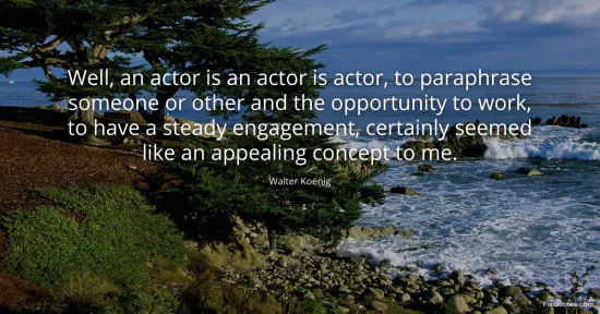 Koenig, Walter. "Well, an actor is an actor is actor, to paraphrase someone or other and the opportunity to work, to have a steady engagement, certainly seemed like an appealing concept to me." FixQuotes. January 15, 2026. https://fixquotes.com/quotes/well-an-actor-is-an-actor-is-actor-to-paraphrase-171006/.
