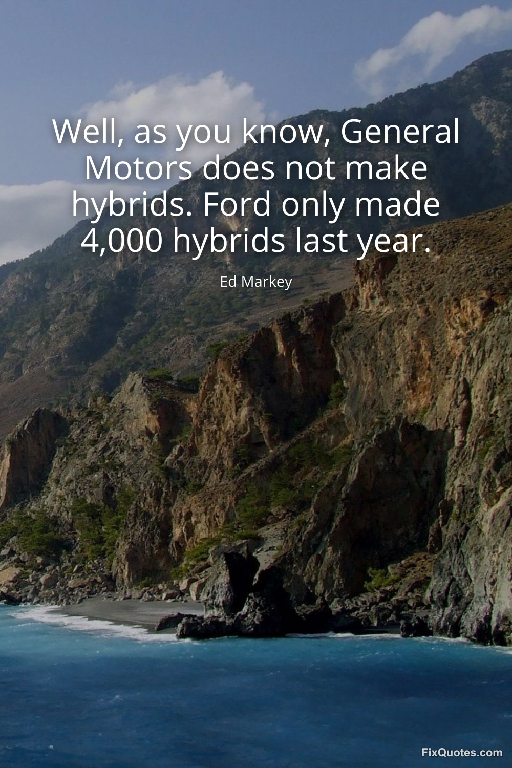 Markey, Ed. (2026, January 17). Well, as you know, General Motors does not make hybrids. Ford only made 4,000 hybrids last year. FixQuotes. https://fixquotes.com/quotes/well-as-you-know-general-motors-does-not-make-59653/