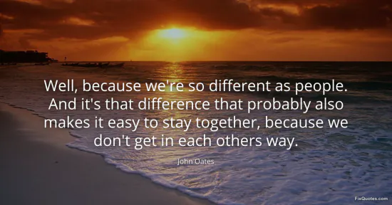 Oates, John. (2026, January 16). Well, because we're so different as people. And it's that difference that probably also makes it easy to stay together, because we don't get in each others way. FixQuotes. https://fixquotes.com/quotes/well-because-were-so-different-as-people-and-its-109729/