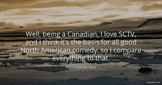Maur, Melissa Auf der. (2026, January 17). Well, being a Canadian, I love SCTV, and I think it's the basis for all good North American comedy, so I compare everything to that. FixQuotes. https://fixquotes.com/quotes/well-being-a-canadian-i-love-sctv-and-i-think-its-57851/