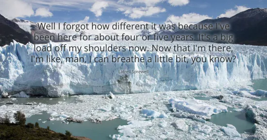 Sprewell, Latrell. (2026, January 17). Well I forgot how different it was because I've been here for about four or five years. It's a big load off my shoulders now. Now that I'm there, I'm like, man, I can breathe a little bit, you know? FixQuotes. https://fixquotes.com/quotes/well-i-forgot-how-different-it-was-because-ive-54727/