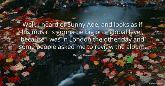 Brown, Dennis. "Well, I heard of Sunny Ade, and looks as if his music is gonna be big on a global level, because I was in London the other day and some people asked me to review the album." FixQuotes. January 17, 2026. https://fixquotes.com/quotes/well-i-heard-of-sunny-ade-and-looks-as-if-his-45294/.