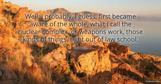 Udall, Tom. (2026, February 16). Well, I probably, I guess, first became aware of the whole, what I call the nuclear complex, or weapons work, those kinds of things, right out of law school. FixQuotes. https://fixquotes.com/quotes/well-i-probably-i-guess-first-became-aware-of-the-122044/