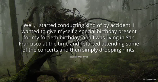 A singer celebrated for boundless improvisation describes his leap to the podium as a kind of playful dare to himself, a birthday gift at 40. That detail matters. The milestone is often tied to consolidation or caution; he frames it as permission to experiment, to enter a new corner of music without apology. The phrase "by accident" is disarming, but it masks a deeper habit of attention and presence. He was in San Francisco, attending concerts, putting himself in the spaces where an idea could turn into an opportunity, then quietly signaling his interest. Serendipity rarely works without proximity. You show up, you listen, you drop hints, and doors tend to crack open.