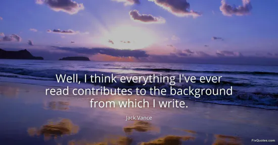 Vance, Jack. (2026, January 15). Well, I think everything I've ever read contributes to the background from which I write. FixQuotes. https://fixquotes.com/quotes/well-i-think-everything-ive-ever-read-contributes-49129/