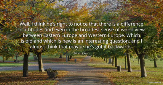Kagan, Robert. (2026, January 15). Well, I think he's right to notice that there is a difference in attitudes and even in the broadest sense of world view between Eastern Europe and Western Europe. Which is old and which is new is an interesting question, and I almost think that maybe he's got it backwards. FixQuotes. https://fixquotes.com/quotes/well-i-think-hes-right-to-notice-that-there-is-a-169099/