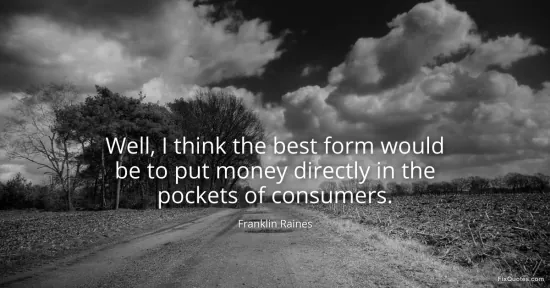 Raines, Franklin. (2026, January 16). Well, I think the best form would be to put money directly in the pockets of consumers. FixQuotes. https://fixquotes.com/quotes/well-i-think-the-best-form-would-be-to-put-money-94304/