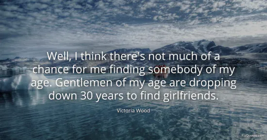 Wood, Victoria. "Well, I think there's not much of a chance for me finding somebody of my age. Gentlemen of my age are dropping down 30 years to find girlfriends." FixQuotes. January 16, 2026. https://fixquotes.com/quotes/well-i-think-theres-not-much-of-a-chance-for-me-117743/.