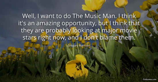 Harrison, Gregory. (2026, January 17). Well, I want to do The Music Man. I think it's an amazing opportunity, but I think that they are probably looking at major movie stars right now, and I don't blame them. FixQuotes. https://fixquotes.com/quotes/well-i-want-to-do-the-music-man-i-think-its-an-60854/