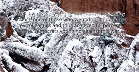"Well, I was a very strong opponent of the war, in fact, one of those who went door to door to my colleagues and thus achieved 60 percent of the Democrats voting no against this war." FixQuotes, 15 Jan. 2026, https://fixquotes.com/quotes/well-i-was-a-very-strong-opponent-of-the-war-in-143014/. Accessed 2 Mar. 2026.