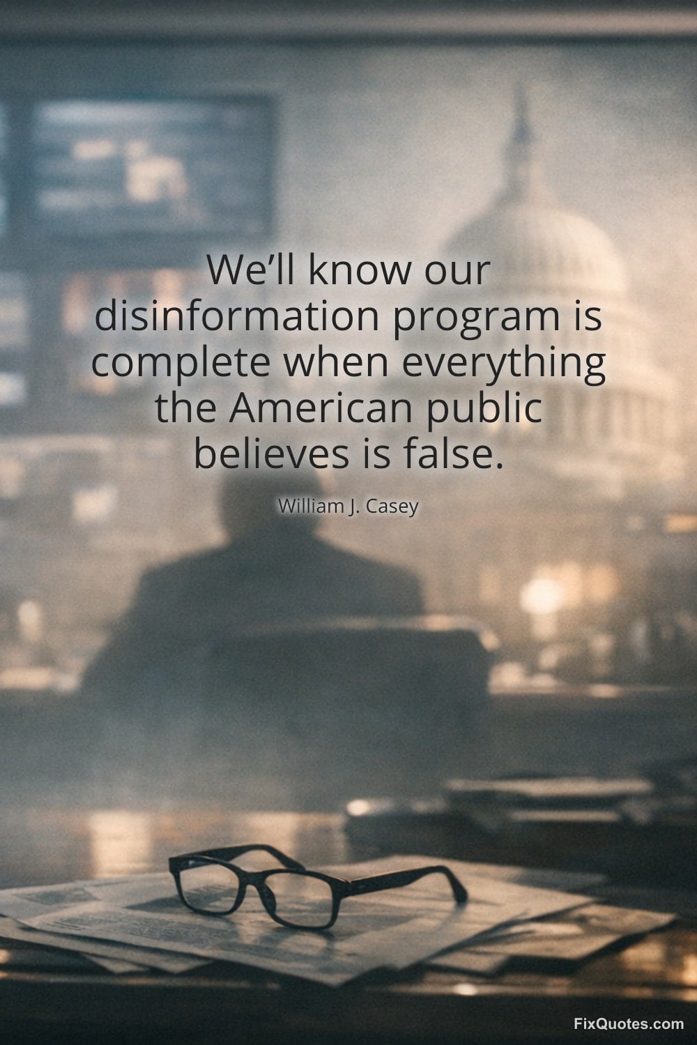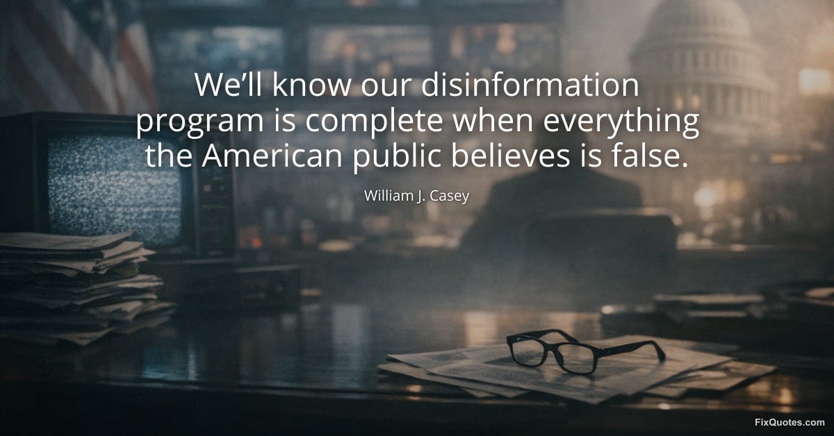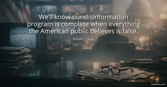 Casey, William J. "We’ll know our disinformation program is complete when everything the American public believes is false." FixQuotes. February 1, 2026. https://fixquotes.com/quotes/well-know-our-disinformation-program-is-complete-172432/.