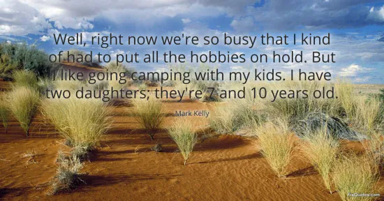Kelly, Mark. (2026, January 17). Well, right now we're so busy that I kind of had to put all the hobbies on hold. But I like going camping with my kids. I have two daughters; they're 7 and 10 years old. FixQuotes. https://fixquotes.com/quotes/well-right-now-were-so-busy-that-i-kind-of-had-to-71089/