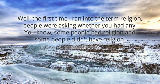 "Well, the first time I ran into the term religion, people were asking whether you had any. You know, some people had religion and some people didn't have religion." FixQuotes, 17 Jan. 2026, https://fixquotes.com/quotes/well-the-first-time-i-ran-into-the-term-religion-37307/. Accessed 12 Feb. 2026.