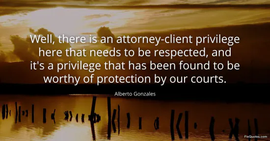 Gonzales, Alberto. (2026, January 15). Well, there is an attorney-client privilege here that needs to be respected, and it's a privilege that has been found to be worthy of protection by our courts. FixQuotes. https://fixquotes.com/quotes/well-there-is-an-attorney-client-privilege-here-40147/